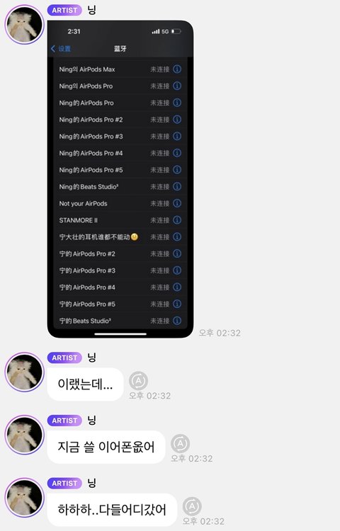 이렇게 닝닝을 짧게 스쳐지나간 애들의 흔적을 보니까 또 새롭네.. 근데 이런 닝닝한테 에어팟 빌리는 사람이 윈터인 게 ㄹㅈㄷ