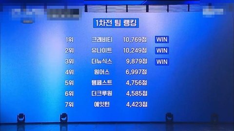 그리고 어제 첫 탈락자팀 결과가 뜸