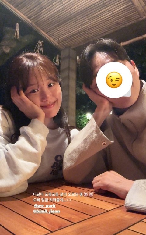 송지은은 10월 18일 소셜미디어를 통해 "나날이 포동포동 살이 오르는 중. 오빠 얼굴 지켜줄게"라는 글과 함께 사진을 게재했다.