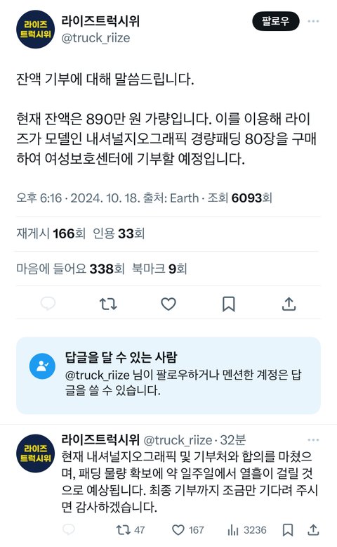 라이즈 모델인 브랜드 패딩사서 여성보호단체에 기부하는거 ㄹㅇ ㄱㅊ다