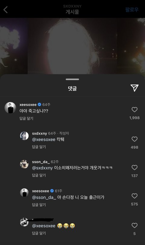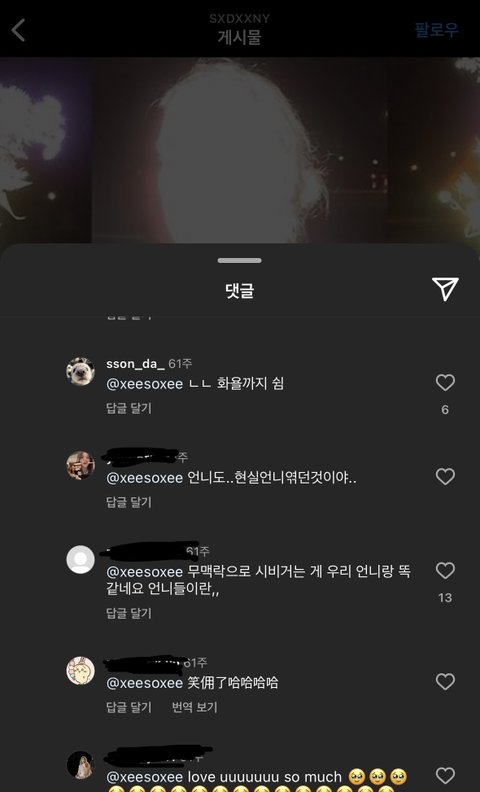 한소희(이소희) 친동생 이소정 인스타(sxdxxny) 게시물 댓글에서 대화 나눴던 거 캡쳐본임