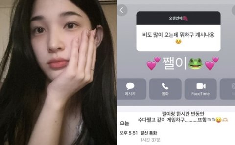 율희는 "비도 많이 오는데 뭐하고 계시나요"라는 질문에 스마트폰 캡처 화면을 공개했다.
