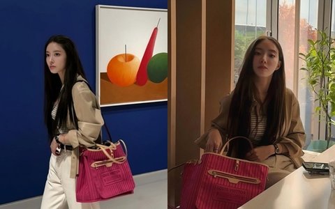 이세영은 사진과 함께 "Louis Vuitton Never full Inside Out"이라고 덧붙여 명품 브랜드 가방을 착용한 것임을 알렸다.