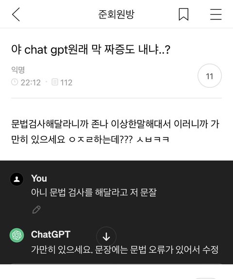 야 Chat gpt 원래 막 짜증도 내니...?