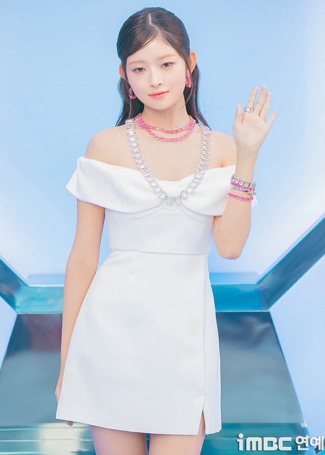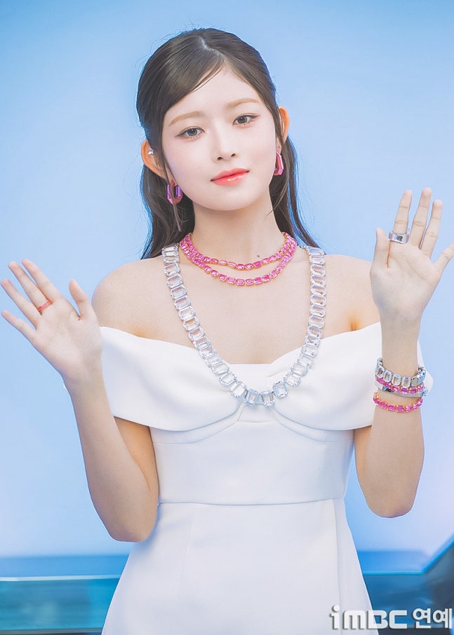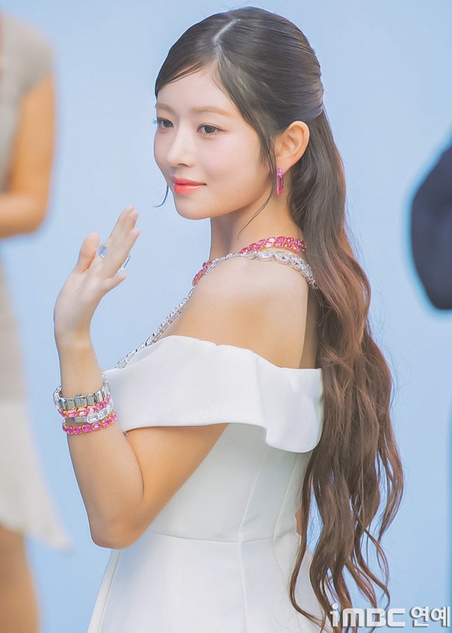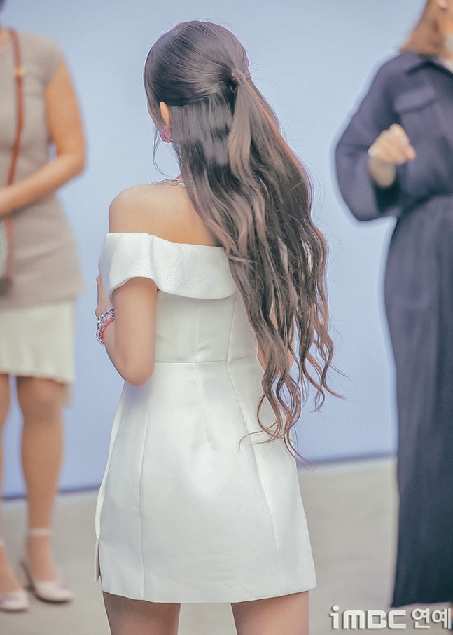 이날 레이는 스완 화이트 미니 드레스와 핑크 힐로 우아한 매력을 뽐냈다. 여기에 색맞춤 핑크 및 실버 목걸이, 귀걸이 및 반지 등으로 포인트를. 묶음 머리로 깔끔한 레이의 비주얼이 돋보였다.