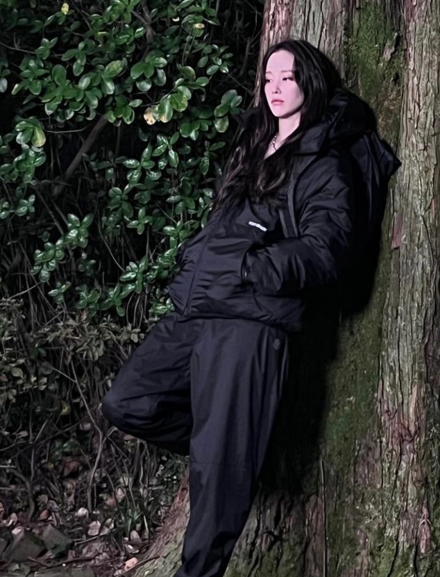 또다른 사진에서는 검정색 트레이닝복 상하의를 입고 나무에 기댄 채 무심한 듯 표정을 짓고 있기도 하다.