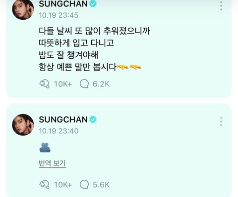 성찬이는 진짜... 팬들이 정병먹고 힘들어 지쳐있을 때 이렇게 항상 간접적이든 직접적이든 얘길 꺼내줌 팬들한텐 이만한 게 없어 진짜