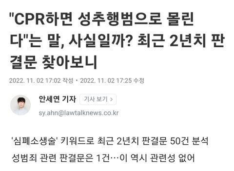 요즘 틱톡 같은데서 쓰러진 여자 cpr해주다가 여자가 깨어나서 성추행으로 고소하는 경우 많다면서 여자 욕하잖아
