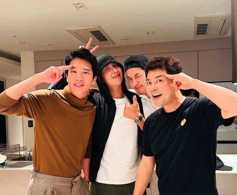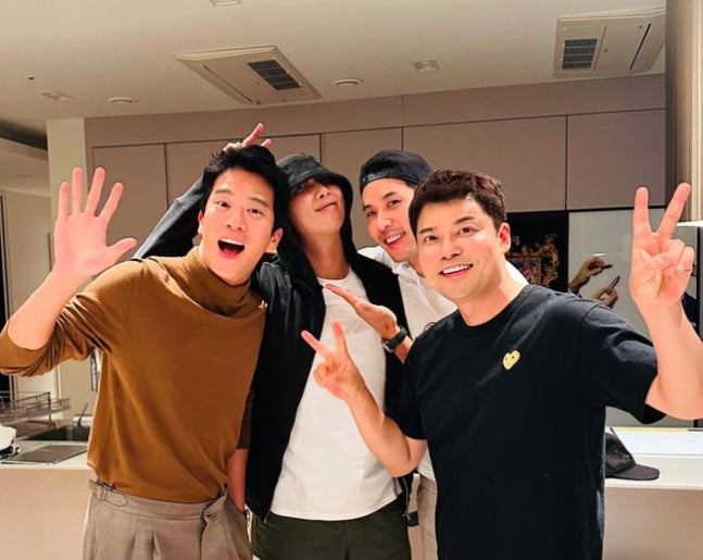 김지석은 "현무형집 밀회. 남준이 토크분량 95%"라고 글을 남겼다. 사진 속에서 전현무, 김지석, 하석진, RM은 나란히 서서 카메라를 응시하며 개구진 표정을 짓고 있어 눈길을 끌었다.