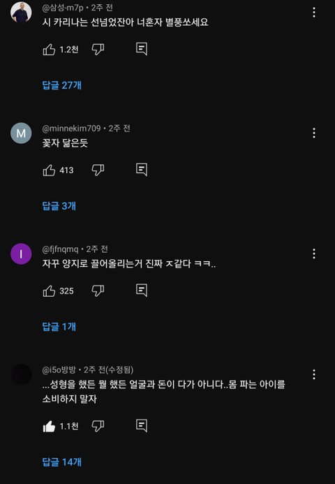 카리나도 성형했으니까 얘랑 비슷하다 하는 애들은 양심이 있냐ㅋㅋㅋ 카리나는 원래 존예였다가 한두군데 해서 연예인 된거고 과즙세연은 첨부터 싹 갈아엎어서 겨우 벗방 찍는거잖ㅋㅋㅋㅋ 제발 역겨우니까 카리나랑 엮지마;;