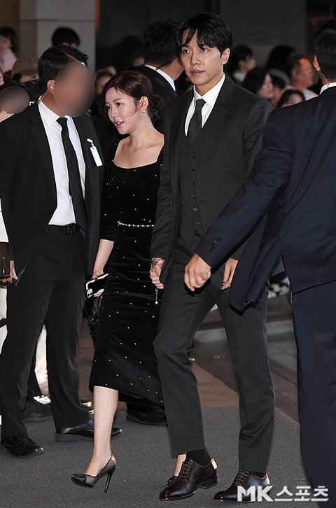이승기 이다인 부부가 결혼식에 참석하고 있다.