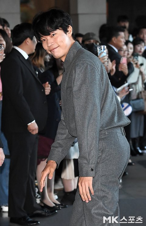 류준열이 결혼식에 하객으로 참석하고 있다.