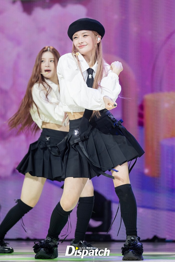 아일릿은 스쿨룩 의상으로 청량한 매력을 뽐냈다. 이로하는 인형같은 미모로 시선을 사로잡았다.