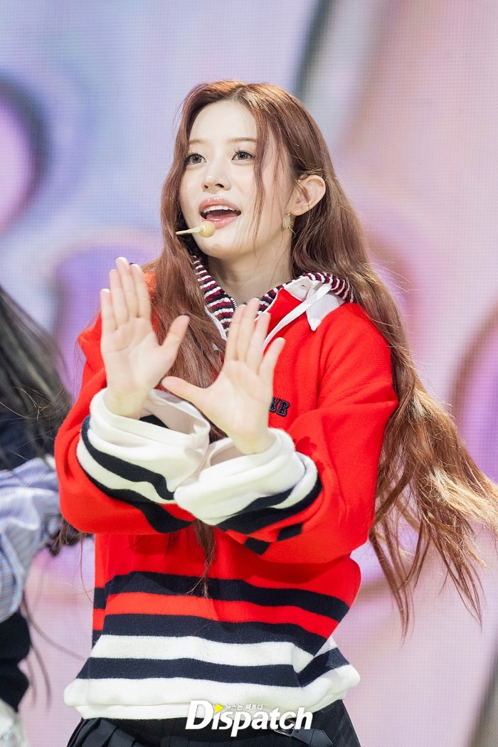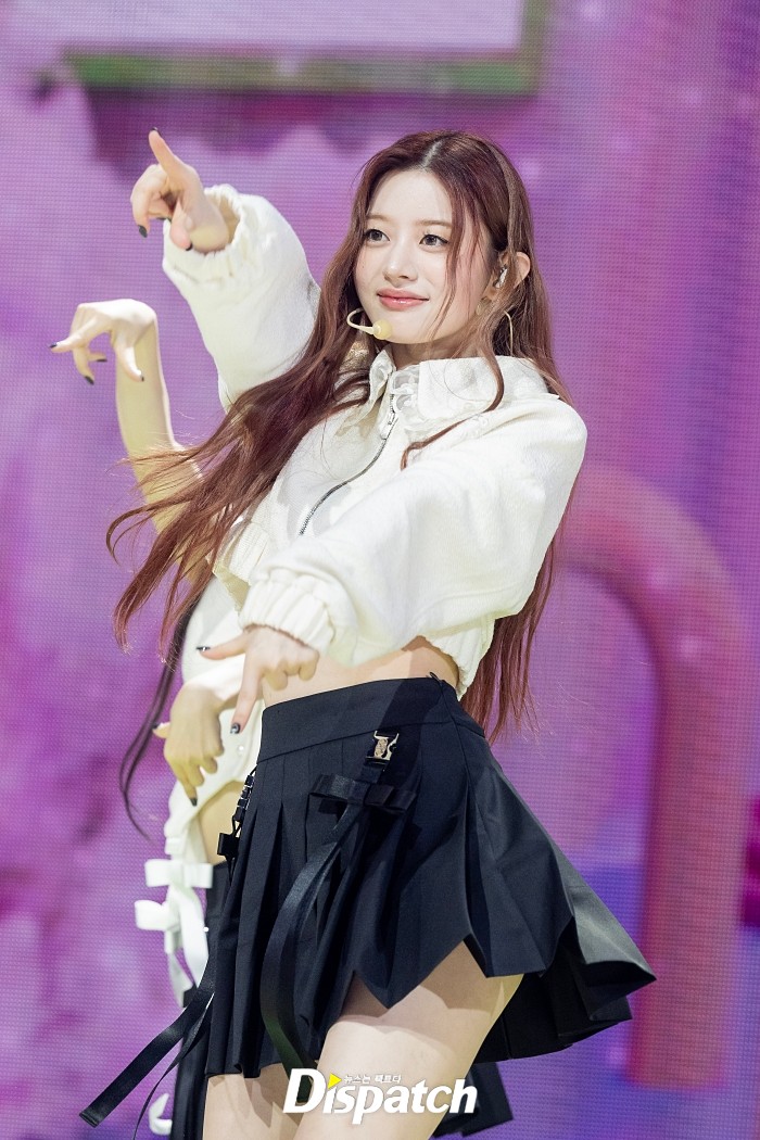 아일릿은 스쿨룩 의상으로 청량한 매력을 뽐냈다. 민주는 인형같은 미모로 시선을 사로잡았다.