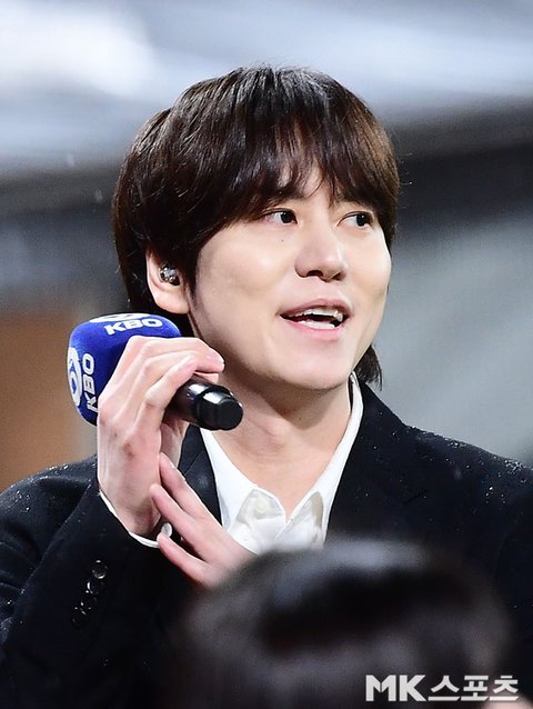 가수 규현이 애국가를 제창하고 있다.