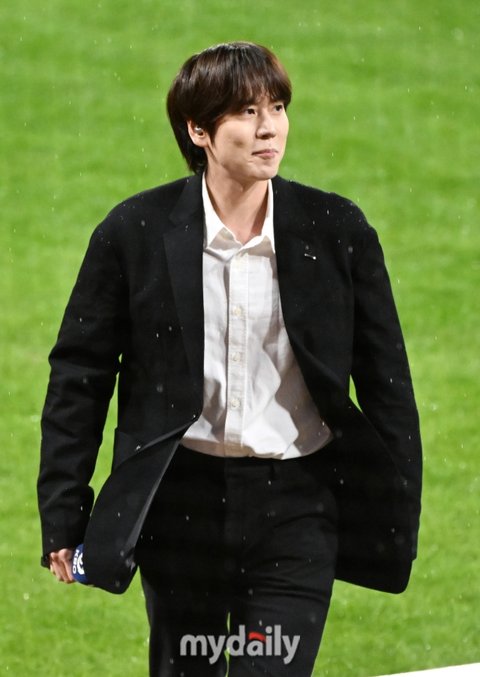송일섭 기자(andlyu@mydaily.co.kr)[마이데일리 = 광주 송일섭 기자] 21일 오후 광주광역시 임동 광주기아챔피언스필드에서 진행된 '2024 프로야구 KBO리그 포스트시즌' 한국시리즈 1차전 KIA타이거즈와 삼성라이온즈와의 경기. 가수 규현이 애국가를 부른 뒤 인사를 하고 있다.