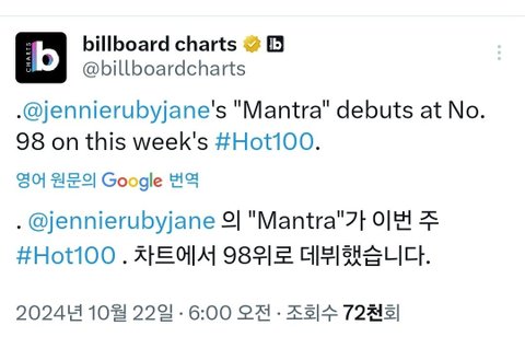 제니 단독곡으로 핫백 첫 진입 ㅊㅋㅊㅋ