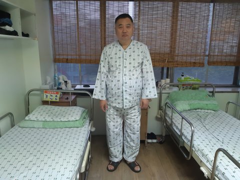 병원 평가가 있어서 환자복을 입었습니다.