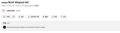 웃긴 건 에스파 댓글 수랑 좋아요가 아일릿보다 훨씬 많다는 거임 ㅋㅋㅋㅋ