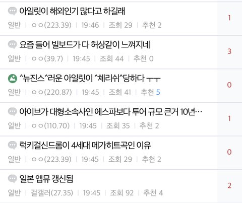 근데 에스파한테 음원으로 처발리고 (진입 에스파 7위, 아일릿 77위 / 탑백 에스파 4~5위 아일릿 69위~80위) 초동으로도 처발리고 (각각 2일차 집계중에서 에스파 60만장 돌파, 아일릿 29만장) 조회수로도 처발렸다가