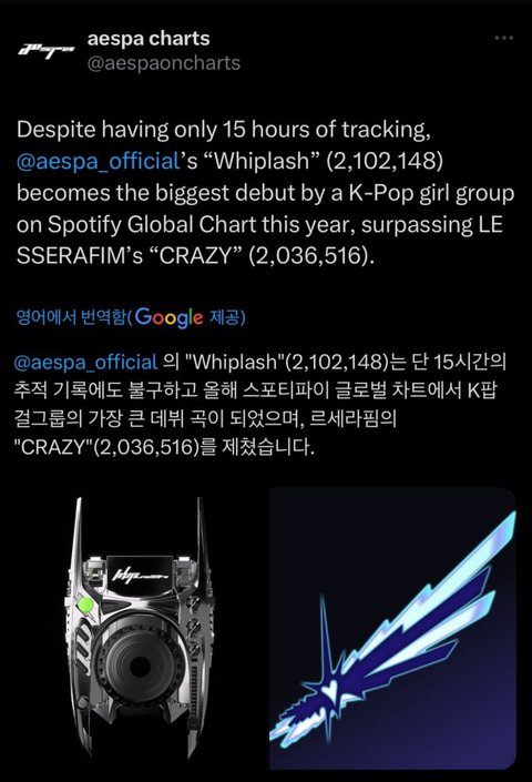 르세라핌 해외인기 많다 하지 않았어..? 에스파가 벌써 넘었네