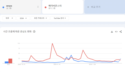 + 추가 베이비몬스터 vs 에스파 태국 유튜브 검색량