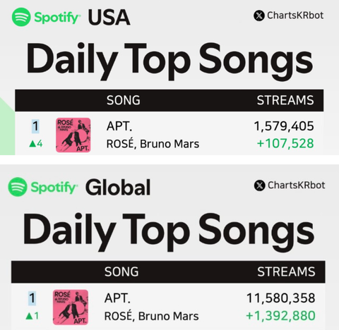 블핑 완전체로도 깨기 힘든 기록같은데.. 글로벌이랑 미국 스포티 3일째 1등임ㄷㄷ