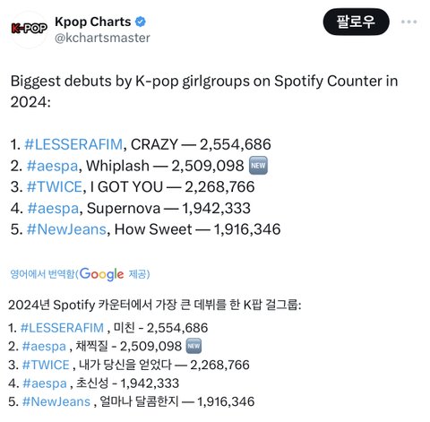 솔직히 낙수╋노하우없이 저정도인 에스파가 사실상 1위아닌가