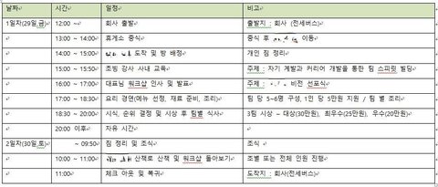3. 내가아는 워크샵 -> 체육대회, 레크레이션등 하면서 협동심기르고 저녁은 고기구워먹음