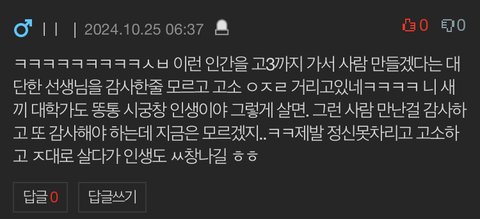 다만 그게 고삼 선생님한테 너 기본 하나도 안 되어있다고 생기부 쓸거다 이런 식의 말을 들을 정도인지는 모르겠다