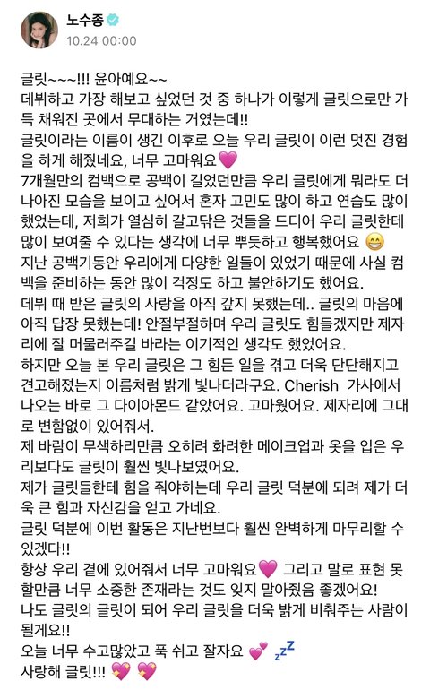 자기가 힘들엇다고 털어놔도 돼는데 팬들이 힘들까, 팬들이 잘 버텨줘서 고밉다고 하는거에 울컥했다.