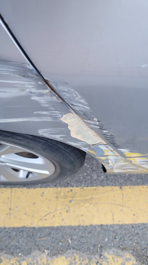 당황스러워서 순간 기둥에 차 긁음