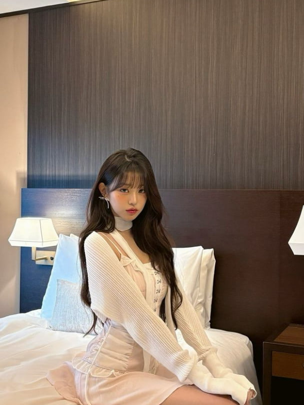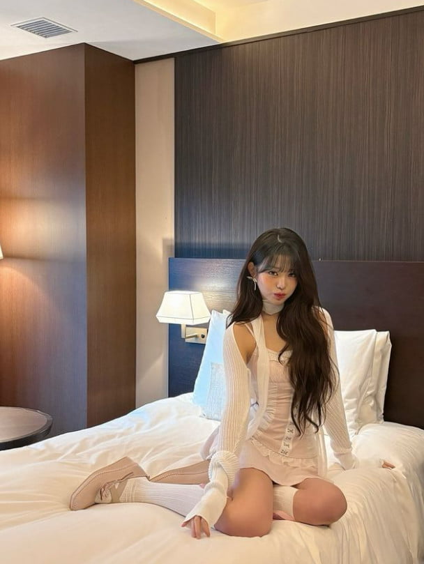 공개된 사진들 속에서 장원영은 한 호텔 침대에 앉아 있는 모습. 특히 얼마나 체중이 적게 나가면 보통 사람들이 앉으면 푹 들어갈 침대임에도 장원영은 꺼짐 하나 없이 마치 구름이 앉은 듯한 가벼운 느낌을 주고 있어 눈길을 끌었다.