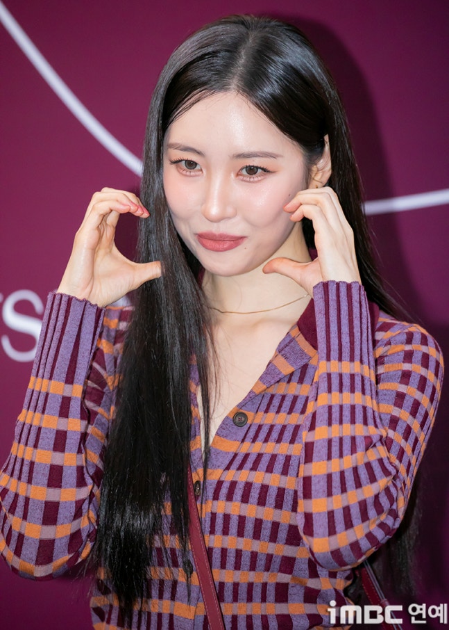 선미가 balloon in love에 빠진 것처럼 볼 하트 포즈를 취했다.