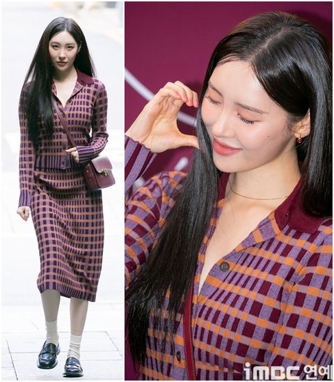 이날 선미는 보랏빛과 붉은 타이탄 체크무늬의 원피스 하나로 러블리한 매력을 뽐냈다. 가로수길을 걸으며 남다른 부끄러운 매력을 뽐낸 선미는 balloon in love 떠오르는 볼 하트 포즈를 취하며 행사를 즐겼다.