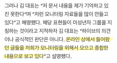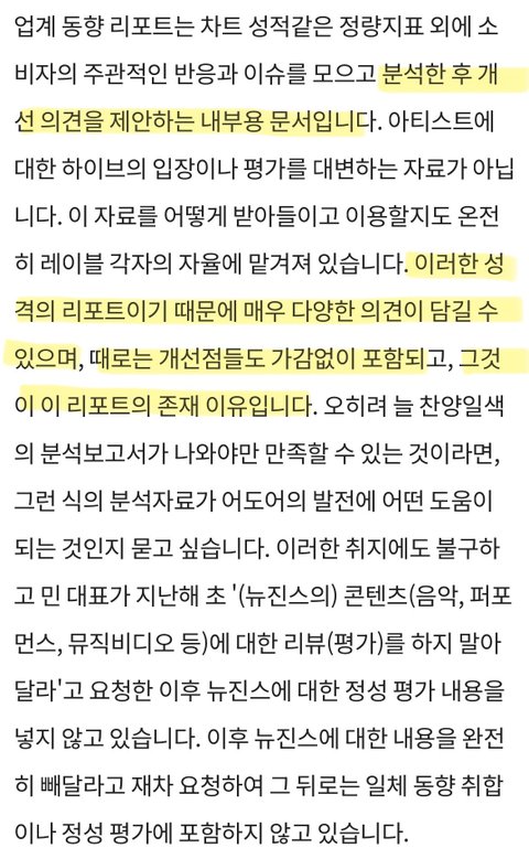 하이브 김태호가 업계동향보고서는 본인들이 모니터링해서 모은 글이라고 대답하길래 찾아봤는데