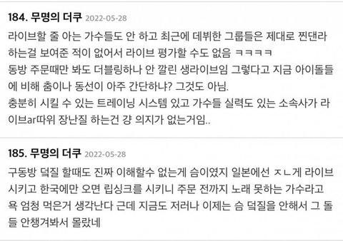 판은 진짜 장원영 못 잃는거 봐ㅋㅋ 장원영이 탑이고 잘 나가긴 하나 보네 상관도 없는 글에도 언급하고 악플 달리네 쓰니야 장원영 안티 ..