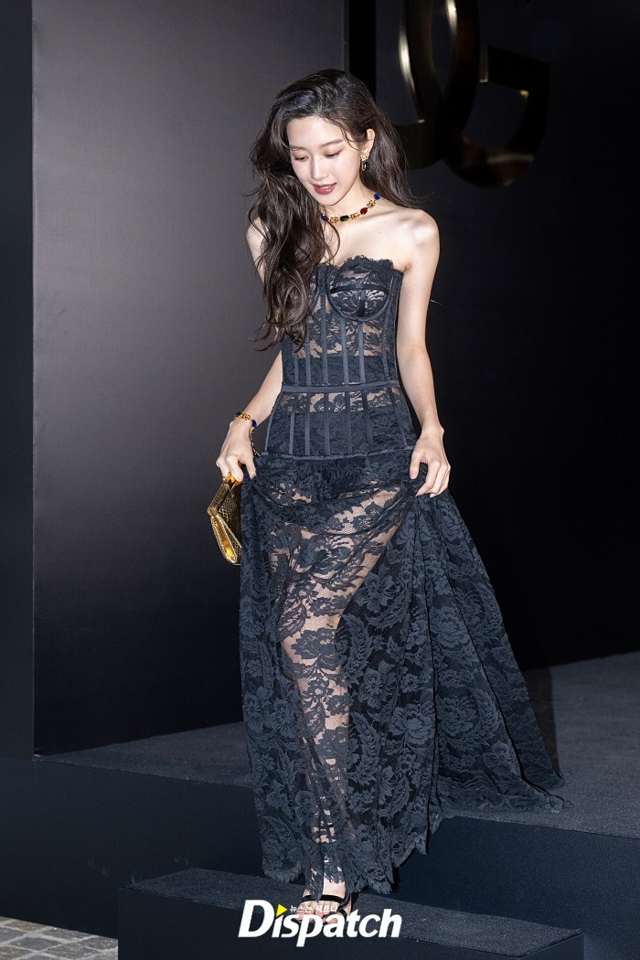 문가영은 블랙 시스루 코르셋 드레스로 섹시한 자태를 드러냈다. 가녀린 몸매가 돋보였다.