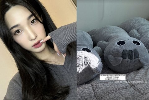 22일 율희는 자신의 사회관계망서비스(SNS)에 "아기들 잘 때 안고자는 애착인형 산 건데 사이즈 판단 미스로 아이들만한 사이즈가"라는 글과 함께 사진을 업로드했다.
