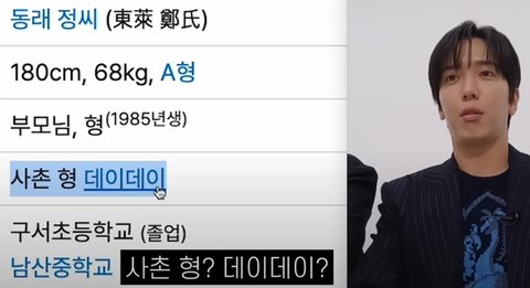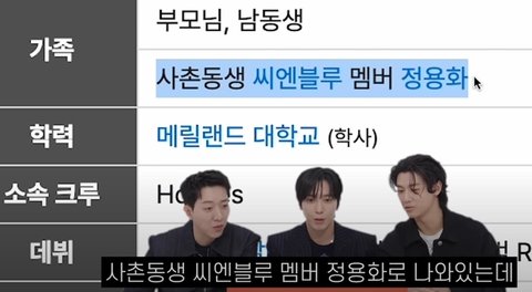 데이데이 프로필 들어가도 사촌동생이 씨엔블루 정용화라고 나와있음ㅋㅋㅋㅋ뭐임 이거