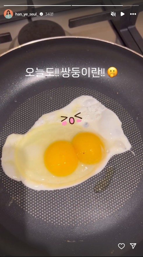 사진에는 한예슬이 요리를 위해 계란을 깐 모습이 담겼다. 프라이팬에 올라간 계란은 노른자가 2개인 이른바 ‘쌍둥이란’이어서 눈길을 끈다. 한예슬은 하루 전에도 쌍둥이란을 경험한 바 있다. 이틀 연속 쌍둥이란이라는 점에서 한예슬이 쌍둥이를 임신하는 게 아니냐는 추측도 오가고 있다.