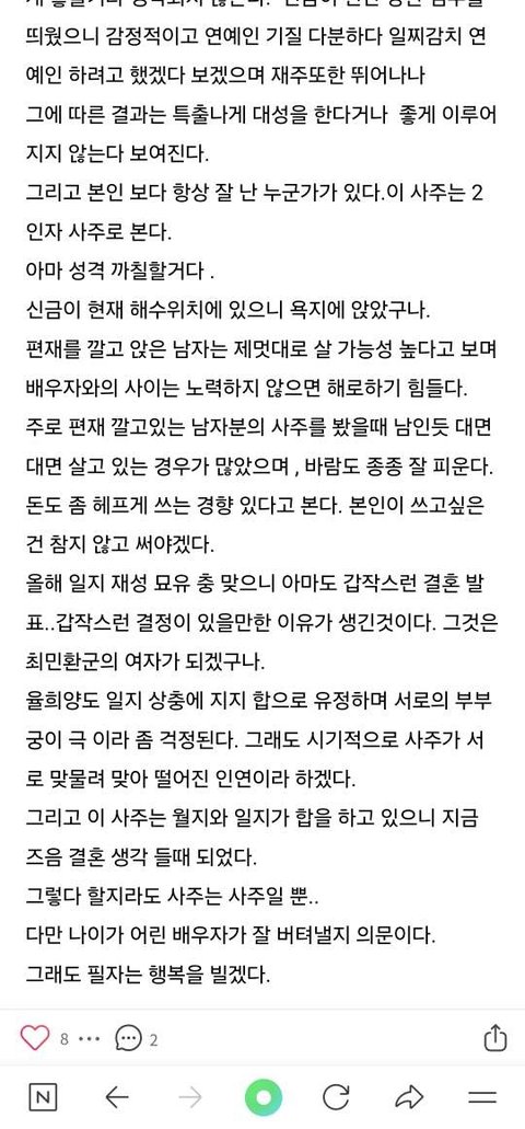 최민환 사주 블로그 소름
