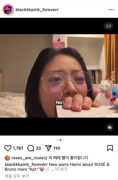 하니가 아파트 흥얼거리는 게시물에 로제가 좋아요 눌러줌 ㅋㅋㅋ