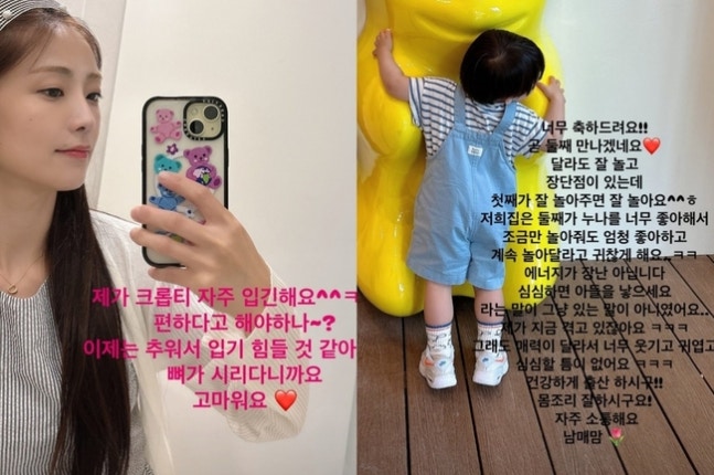 사진=소율먼저 한 팬이 "첫째 둘째 성별 달라도 잘 노나요"라고 묻자, 소율은 "달라도 잘 놀고 장단점이 있다. 첫째가 잘 놀아주면 잘 논다. 저희 집은 둘째가 누나를 너무 좋아해서 조금만 놀아줘도 엄청 좋아하고 계속 놀아달라고 귀찮게 해요"라고 전해 훈훈함을 더했다.