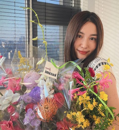 사진에서 진아름은 꽃다발을 한가득 받고 포즈를 취했다.