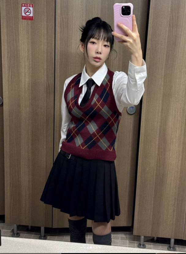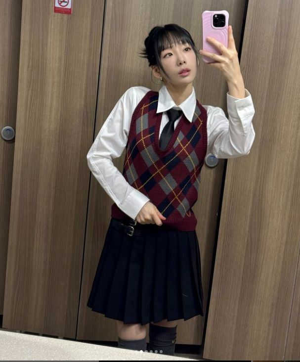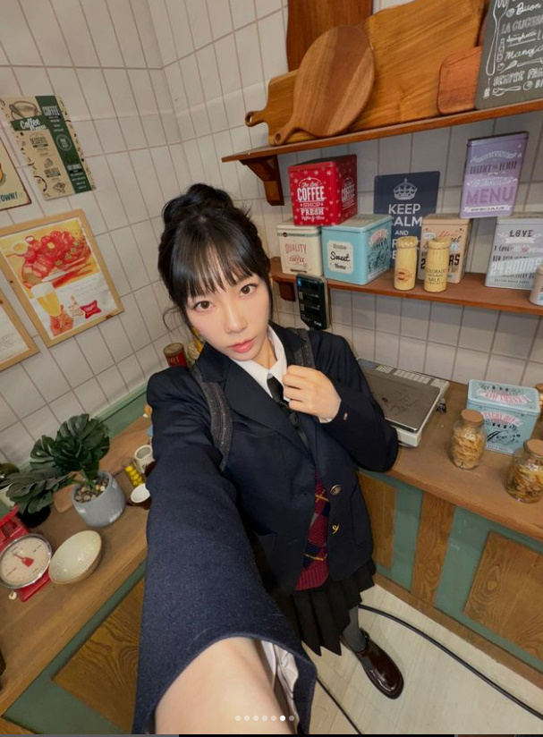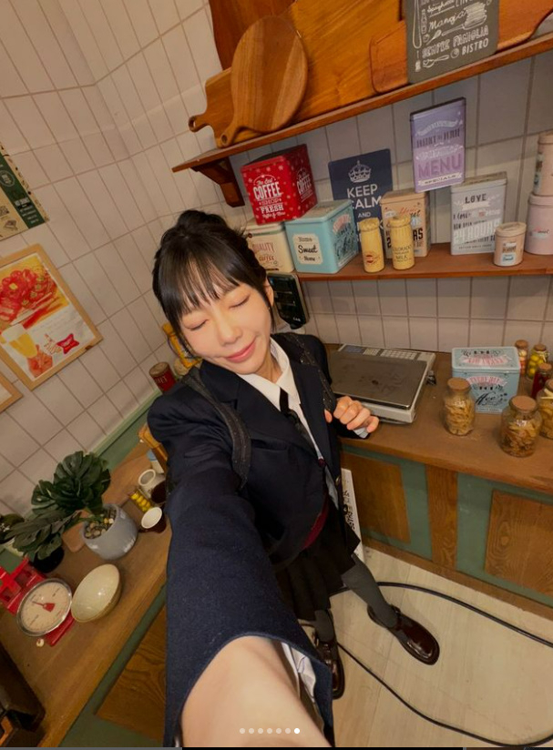 사진 속 태연은 교복을 입고 다양한 표정과 제스처로 셀카를 찍는 모습이다. 30대 중반의 나이가 믿기지 않는 비주얼로 보는 이들의 감탄을 자아냈다.