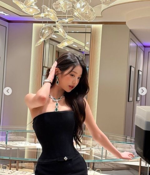 사진 속 장원영은 블랙 컬러의 드레스를 입고 완벽한 S라인 몸매를 보여준다. 장원영의 여리여리한 어깨 라인이 시선을 사로잡는다.