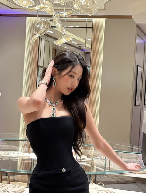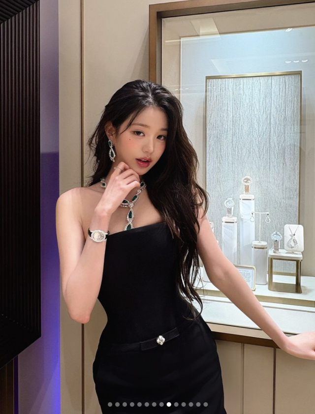 심플한 의상에 화려한 귀걸이, 목걸이, 시계 등의 액세서리를 매치해 화려한 비주얼을 더하며 보는 이로 하여금 감탄을 자아낸다. 미모와 몸매 모두 비현실적인 장원영의 모습에 누구도 시선을 뗄 수 없다.
