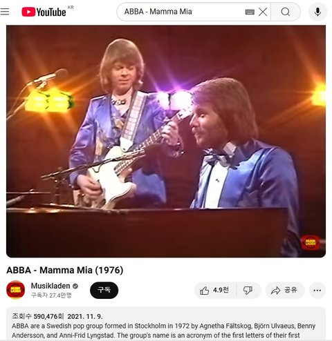 (사진2 설명) ABBA - Mamma Mia (1976)