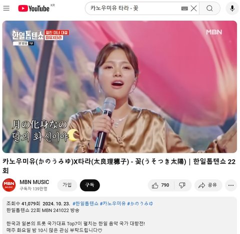 (사진6 설명) 카노우미유(かのうみゆ)X타라(太良理穂子) - 꽃(うそつき太陽)|한일톱텐쇼 22회